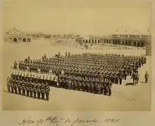 The regiment embarked for the Cape Colony in January 1878[31] and fought in the Ninth Xhosa War later that year.[32] It also saw action at the Battle of Kambula in March 1879[33] and the Battle of Ulundi in July 1879 during the Anglo-Zulu War.[34] The regiment embarked for India again in October 1879.[35]