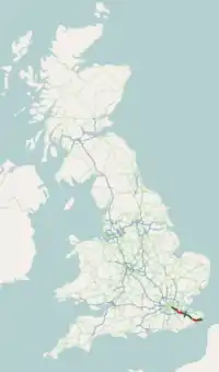J1 → M20 motorway J3 → M25 motorway 2a J2a → M26 motorway J5 → M20 motorway J8 → M20 motorway J10 → M20 motorway J11-J11a-J12 → M20 motorway J13 → M20 motorway | |