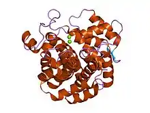 In molecular biology, ADP-ribosylglycohydrolase is a family of enzymes which catalyses the hydrolysis of ADP-ribosyl modifications from proteins, nucleic acids and small molecules.[1] This family has three members in humans (ARH1-3): ARH1, also termed [Protein ADP-ribosylarginine] hydrolase, cleaves ADP-ribose-L-arginine,[2] ARH2, which is predicted to be enzymatically inactive,[3] and ARH3, which cleaves primarily ADP-ribose-L-serine, but was shown also to take poly(ADP-ribose), O-1''-acetyl-ADP-ribose and alpha-nicotinamide adenine dinucleotide as substrates.[4][5][6][7] The family also includes ADP-ribosyl-(dinitrogen reductase) hydrolase known to regulate dinitrogenase reductase, a key enzyme of the nitrogen fixating pathway in bacteria,[8][1] and most surprisingly jellyfish crystallins,[8] although these proteins appear to have lost the presumed active site residues.