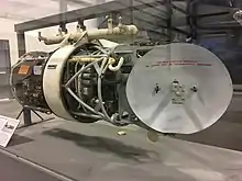![]() Front-oblique view of the AN/APS-4 radar pod without its external shell | |
