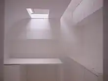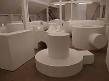 In the course of six years Absalon created a series of one person living units based on everyday routine actions and designed entirely in relation to his measures. The inside of the cell is all covered in white in order to reduce distractions or elements that can disturb the eye. In his video Solutions (1992) Absalon demonstrate the study of measurements and calculation of movements like eating, sleeping, taking shower which later will define the form of his cells. In 1993 Absalon started to construct six cells which were supposed to be installed in six metropolitan centers[6] as Absalon described in interview: "I would like to create my own setting and belong to nothing else. My living unit will be comprised of the six habitation units which I construct, and my homeland will be in-between them." [7]