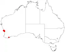The species is found around Dandaragan in the Mid West region of Western Australia where it grows mostly in loamy and clay soils, often overlying sandstone or siltstone and is common in drainage lines.[2] It is often found along watercourses in the understorey as a part of Eucalyptus wandoo and Eucalyptus loxophleba woodland communities.[5]