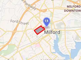 The school's 30-acre campus is located a block from the Metro-North Railroad's Milford station.[2]