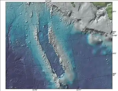 The Adare Basin is a geologic structural basin located north-east of Cape Adare of Antarctica, for which its named, and north of the western Ross Sea. The Adare Basin is an extensional rift basin located along a seafloor spreading center that forms the failed arm of the Tertiary spreading ridge separating East and West Antarctica, known as the West Antarctic Rift System and similar in structure to the East Africa Rift System. Centrally located in the Adare Basin is the Adare Trough. The extension of this rift system is recorded in a series of magnetic anomalies which run along the seafloor at the extinct, north-south trending, Adare spreading axis.[1][2][3] The Adare spreading system continues unbroken into the Northern Basin underlying the adjacent Ross Sea continental shelf. [4][5]