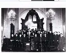 - Adas Israel was formed in the 1890s by members of the Moses Montefiore congregation, an earlier Orthodox congregation composed of Lithuanian Jews. By the turn of the 20th century, there were close to 1,500 Jews living in Duluth, most of who were Russian or Eastern European. The men in the picture were observing Simchas Torah, the holiday marking the end of the weekly cycle of Torah readings. (1914)[10]...The men are assembled on the bimah (the stage or platform in front of the Ark) containing the Torah scrolls of Adas -- literally, "'congregation' Israel". (1919).[11]