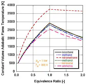 - "Adiabatic Flame Temperature". The Engineering Toolbox. Archived from the original on 28 January 2008. Retrieved 2008-01-27. adiabatic flame temperature of hydrogen, methane, propane and octane with oxygen or air as oxidizers