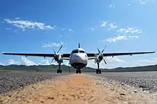 Aero Mongolia is one of the two national airlines of Mongolia. Its head office is on the third floor of Buyant-Ukhaa International Airport in Ulaanbaatar.[1] It operates domestic flights to eleven destinations, and also operates international scheduled services to Irkutsk, Russia, and to Hohhot, China. Its main base is Chinggis Khaan Airport.[2]