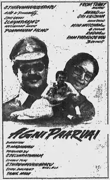 Agni Paarvai is a 1992 Tamil crime film directed by P. Madhavan. The film features Su. Thirunavukkarasar, Nizhalgal Ravi, Saranya Ponvannan, Ramkumar and Anju in lead roles. The film, produced by S. Selvarethinam, had musical score by Ilaiyaraaja and was released on 7 February 1992.[1][2]