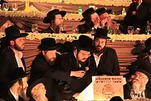 The bar mitzvah of Aharon Mordechai's eldest son was also cause for tremendous celebration in Belz. Sholom, named after the first Belzer Rebbe, the Sar Sholom, celebrated his bar mitzvah on 26 February 2008 (27 Adar I 5768). The bar mitzvah tish was conducted by the Belzer Rebbe, in the presence of thousands of Hasidim and dozens of other Rebbes and Torah leaders. As the Belz Great Synagogue was not large enough for the crowd, a giant tent with bleachers was erected out in the courtyard. Festive meals and other events were held for the women in all five halls of the Jerusalem Convention Center.[4] On 21 May 2013, their eldest son, Sholom Rokeach, married Hannah Batya Peneth (a daughter of Rabbi Yechiel Meir Peneth, one of the Rabbis of the Belzer community in Bnei Brak), in a ceremony at the Belz Great Synagogue that was attended by tens of thousands of guests and well-wishers. A daughter was born to the young couple on 4 May 2014.[5]