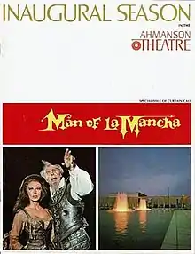 Construction began on March 9, 1962. The theatre's inaugural event was held on April 12, 1967, with the Los Angeles Civic Light Opera Association sponsoring the national cast production of Man of La Mancha, starring Richard Kiley and Joan Diener.[2] The theatre also was the U.S. premiere of More Stately Mansions starring Ingrid Bergman, Arthur Hill, and Colleen Dewhurst, which opened September 12 of that same year.[3] Since then, it has presented a wide variety of dramas, musicals, comedies and revivals of the classics, including six world premieres of Neil Simon plays and works by Wendy Wasserstein, August Wilson, A.R. Gurney, Terrence McNally, John Guare and Edward Albee. The Ahmanson also has served in the capacity of co-producer for a number of Broadway productions, including Amadeus, Smokey Joe's Cafe, The Most Happy Fella, and The Drowsy Chaperone. It was also home to the Los Angeles production of The Phantom of the Opera which ran at the theater from 1989 to 1993. It opened with the original London and Broadway Phantom Michael Crawford as the Phantom. He was later replaced with actor Robert Guillaume , Then finally Davis Gaines.