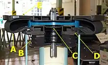 In 1954, Frenchman Paul Magès developed a functioning air/oil hydropneumatic suspension, incorporating the advantages of earlier air suspension concepts, but with hydraulic fluid rather than air under pressure.[13] Citroën replaced the conventional steel springs on the rear axle of their top-of-range model, the Traction Avant 15 Hydraulique.[14] In 1955, the Citroën DS incorporated four wheel hydropneumatic suspension. This combined a very soft, comfortable suspension, with controlled movements, for sharp handling, together with a self-levelling suspension.[15]