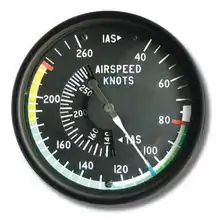 The measurement and indication of airspeed is ordinarily accomplished on board an aircraft by an airspeed indicator ("ASI") connected to a pitot-static system. The pitot-static system comprises one or more pitot probes (or tubes) facing the on-coming air flow to measure pitot pressure (also called stagnation, total or ram pressure) and one or more static ports to measure the static pressure in the air flow. These two pressures are compared by the ASI to give an IAS reading.