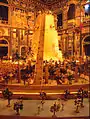 The name of the temple is Siddhkoot Chaityalaya. It is also known as 'Red Temple' as it is built of red sandstone or 'Nasiyan of Seth Moolchand Soni' signifying the founder’s name.[4] After the Svarna Nagri was added to the temple in 1895 A.D. it popularly began to be called as 'Sone ka Mandir' or 'Soni Mandir' emphasizing the golden structure as well as the family name. The halls of this temple are adorned with fascinating series of large, gilt wooden figures and delicate paintings that display scenes from Jain scriptures.[5]