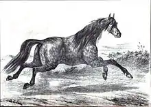 The ancestors of the breed may date back to animals living 3,000 years ago, known by a number of names, but most often as the Nisean horse.[14] The precise ancestry is difficult to trace, however, because prior to about 1600 AD, horse breeds in the modern sense did not exist; rather, horses were identified by local strain or type.[15]