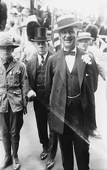 In September, Smith formally approached Roosevelt about running for governor. However, he failed to convince Roosevelt to commit to running.[1] Still unwilling to run, Roosevelt attempted to place himself out-of-reach from state leaders seeking to convince him otherwise. As the New York Democratic Party was preparing to convene in Rochester, Roosevelt vacationed in Warm Springs. However, on the eve of the convention, Smith reached Roosevelt by telephone and persuaded him to accept the nomination.[1][2] Jimmy Walker, then a friend to Roosevelt, placed his name into nomination at the convention.[2]
