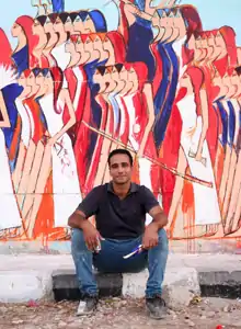 ![]() Awad with his mural "Daughters of the Nile", Luxor, Egypt, 2019 | |