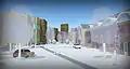 Zhuzhuo, China. The Zhuzhuo Activity Centre for Women, Children, Juveniles and Elder Persons. View from Shen Nong Avenue looking east. CGI image, December 2012