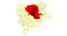 The surrounding region, the so-called Mancha de Albacete stands out for its horizontality.[25] The municipality lies to a large extent on an endorheic area, prone to water-logging after heavy rains.[25] In that sense, the urban nucleus was in fact an endemic focus of malaria until the Royal Canal of Albacete was built.[25]