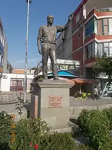 President George W. Bush visited Albania on 10 June 2007 as part of his tour of Europe, making him the first US President to do so.[17] He was received with great fanfare by Tirana's citizens. A street in the capital was renamed after Bush.[18] Even a statue of Bush was erected in the town of Fushë-Krujë in July 2011.[19]
