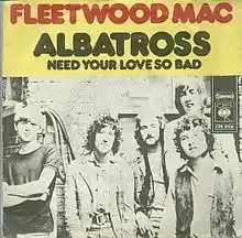 "Albatross" was re-released in the United Kingdom as a double A-sided single with "Need Your Love So Bad" in April 1973. This re-release was part of a CBS Records series entitled "Hall of Fame Hits". As a result of the re-release, "Albatross" enjoyed a second UK chart run, peaking at number 2.[1]