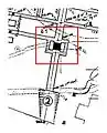 Enlargement of entrance 2 to tunnel complex with 'baffle' isolated in red box