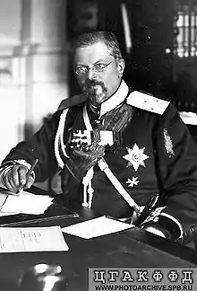 Alexander Roediger (or Rödiger) (Russian: Алекса́ндр Фёдорович Ре́дигер, tr. Aleksándr Fyodorovich Rédiger; 12 January 1854 [O.S. 31 December 1853], Veliky Novgorod, Novgorod Governorate, Russian Empire – 26 January 1920, Sevastopol, Crimean ASSR, Russian SFSR) was a Russo-German General of Infantry who fought in the Russo-Turkish War of 1877-78, served as a member of the Imperial Russian State Council, and was the Minister of War of the Russian Empire (1905–1909). He also briefly served as the Minister of War of the Principality of Bulgaria (1883).