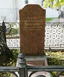 Aged seventy upon his retirement, he lived in his shared apartment with his sickly wife and another couple. He died in Moscow from congestive heart failure, and was given an honourable state funeral, buried in the Novodevichy Convent, by representatives from the 'new Russia' (the Bolsheviks), and the 'old Russia' (the clergy, the middle and upper class). His second wife Nadezhda Brusilova-Zhelikhova (1864–1938) is buried in the Orthodox section of the Olšany Cemetery in Prague, along with a number of other members of the Russian emigration.