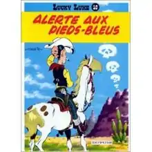 Alerte aux Pieds Bleus is a Lucky Luke adventure in French, written and illustrated by Morris it was the tenth title in the original series and was published by Dupuis in 1958 and by Cinebook in English as The Bluefeet are coming!. It is unique in the sense that it was the only story published solo by Morris after starting a collaboration with René Goscinny.