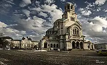 The St. Alexander Nevsky Cathedral (Bulgarian: Храм-паметник "Свети Александър Невски", Hram-pametnik "Sveti Aleksandar Nevski") is a Bulgarian Orthodox cathedral in Sofia, the capital of Bulgaria. Built in Neo-Byzantine style, it serves as the cathedral church of the Patriarch of Bulgaria and it is believed to be one of the 50 largest Christian church buildings by volume in the world. It is one of Sofia's symbols and primary tourist attractions.[3] The St. Alexander Nevsky Cathedral in Sofia occupies an area of 3,170 square metres (34,100 sq ft) and can hold 5,000 people inside.[3][1] It is believed to be among the 10 largest Eastern Orthodox church buildings. It is the third largest Orthodox Cathedral located in Southeast Europe, being surpassed only by two new and not yet fully completed Cathedrals - the Romanian People's Salvation Cathedral in Bucharest, and the Church of Saint Sava in Belgrade.[4] It is believed that until year 2000 it was the largest finished Orthodox Cathedral.