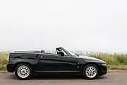 The two-seater hard roof version also saw a convertible version, the RZ (for Roadster Zagato), produced from 1992 until December 1994. Although almost identical to look at, the two cars had completely different body panels save for the front wings and boot. The RZ had a revised bumper and door sills to give better ground clearance and the bonnet no longer featured the aggressive ridges. Three colours were available as standard including black, yellow and red, with black and yellow being the more popular choices. Yellow and red cars got a black leather interior and black cars burgundy. Although the interior layout was almost unchanged from the SZ, the RZ had a painted central console that swept up between the seats to conceal the convertible roof storage area. 350 units were planned but production was halted after 252 units when the Zagato factory producing the cars for Alfa Romeo went into receivership, a further 32 cars were then completed under the control of the receivers before production finished at 284 units. Of those, three RZs were painted silver with burgundy interior and the final RZ was painted pearlescent white.[6][7]