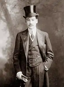 Soon after graduation, Vanderbilt, with a party of friends, started on a tour of the world which was to have lasted two years. When they reached Japan on September 12, 1899, he received news of his father's sudden death and hastened home as speedily as possible to find himself, by his father's will, the head of his branch of the family.[2][3]