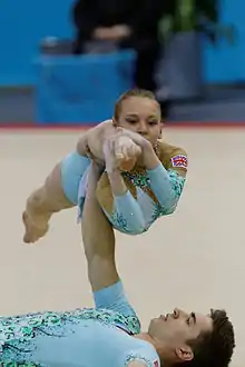 ![]() Alice Upcott and Dominic Smith at the 2014 Acrobatic Gymnastics World Championships. | |||||||||||||||||||||||||||||||||||