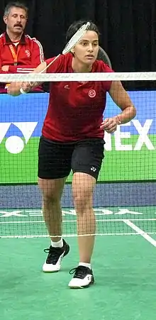 Aliye Demirbağ (born 19 February 1998) is a Turkish badminton player who competed at the 2014 Summer Youth Olympics in Nanjing, China.[1][2] In 2015, she won the bronze medal at the European Junior Championships in Lubin, Poland.[3] She competed at the 2018 Mediterranean Games, and grab the women's singles bronze medal.[4]