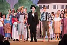 Since the late 1970s the ASDS theater program has become a large part of student and community life. Younger students participate in what is called “Primary Players,” in which short skits are presented to the school and to parents. Older students up through 8th grade put on two large scale productions each year, a musical and a Shakespeare play. Students are encouraged to participate by trying out for parts, as stage crew, or playing an instrument in the live band. It is part of the school’s educational philosophy that graduates from All Saints’ have received steady practice and experience speaking in front of a large audience from their first year at the school.[22]