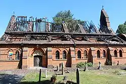 Far greater damage was caused in 2015 by an arson attack. On 22 June the roof and much of the interior was destroyed by a major fire.[5] Daniel Finnerty, a seventeen-year-old local, was subsequently arrested for suspected arson.[6] In November 2015, at Winchester Crown Court, Finnerty pleaded guilty to two charges of arson and was sentenced to four years in a Youth Offender Institution (reduced to 3 1⁄2 years on appeal)[7] and to a three-year extended licence.[8]