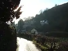 There is a small church in the village, built in 1902 and dedicated to St Michael and All Angels. It is a joint Church of England and United Reformed Church, and serves as one of three churches in the Church of England's ecclesiastical parish of Church Stretton, along with those in All Stretton and Little Stretton.[5] The ecclesiastical parish is part of the Diocese of Hereford. The church stands at the northern end of the village, on a hillside rising steeply from Shrewsbury Road. The church has a Roll of Honour naming the parish dead of both World Wars, and wooden panelling that includes the door to the vestry, in memory of a former curate, John Charles Bartleet, who died on active service as an army chaplain in Palestine in 1942.[6]