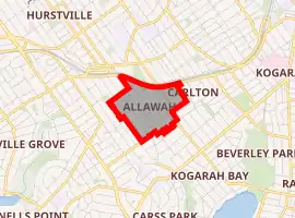 Allawah is a suburb in southern Sydney, in the state of New South Wales, Australia. Allawah is 16 kilometres south of the Sydney central business district and is part of the St George area. Allawah lies in the local government area of the Georges River Council. The postcode is 2218, which is shared by the neighbouring suburb of Carlton.[2]