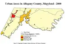 Allegany County is part of the Cumberland, MD-WV Metropolitan Statistical Area. It is a part of the Western Maryland "panhandle".