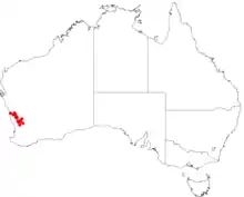 The dioecious intricate shrub typically grows to a height of 0.5 to 3 metres (2 to 10 ft). It produces red-brown flowers from July to September and is found in sandy or gravelly lateritic soils.