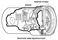 Modern aircraft use a "sensitive altimeter". On a sensitive altimeter, the sea-level reference pressure can be adjusted with a setting knob. The reference pressure, in inches of mercury in Canada and the United States, and hectopascals (previously millibars) elsewhere, is displayed in the small Kollsman window,[6] on the face of the aircraft altimeter. This is necessary, since sea level reference atmospheric pressure at a given location varies over time with temperature and the movement of pressure systems in the atmosphere.
