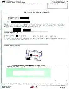 - "Visitors to Canada and other Temporary Residents: Identification documents required". Canada Border Services Agency. 2010-05-19. Archived from the original on 2012-05-30. Retrieved 2012-04-20.