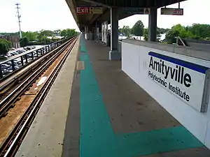 ![]() The southern side of the island platform at the Amityville LIRR station. | ||||||||||||||||