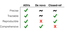 The introduction of ASV methods spurred a debate among researchers regarding their utility. Some have argued that ASVs should replace OTUs in marker gene analysis. Arguments in favor of ASVs focus on the precision, tractability, reproducibility and comprehensiveness that ASVs can provide to marker gene analysis. The utility of finer sequence resolution (precision) and the advantage of being able to easily compare sequences between different studies (tractability and reproducibility) makes ASVs the better option for analyzing sequence differences. The units within OTUs can change between researchers, experiments, and databases, since these are operational units and therefore depend on the person who created that specific similarity threshold. Whereas ASVs are exact nucleotide sequence variation, so the changes seen between past experiments can be more easily traced to biological differences instead of unit clustering differences. This means researchers are able to work with themselves from two years ago because ASVs do not utilize database or researcher biases clusters, instead ASV's are detectable biological variation providing consistent labeling across all datasets. Also ASV’s tables provide a more precise and comprehensive sequence variation compared to OTUs databases because operational units vary between experiment and researcher. Since these are exact sequence variations, ASV’s are more comprehensive and precise in comparison to the operational units created by each database. Although the validity of OTUs has been proven, ASVs are more precise, reusable, comprehensive, and reproducible for marker gene sequencing. [4] [5]