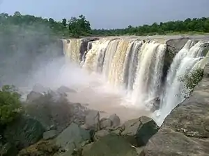Amrit Dhara is a natural waterfall located in Koriya district, state of Chhattisgarh, India. It originates from the Hasdeo River, which is a tributary of the Mahanadi River.[1] The fall is situated at a distance of 50 km from Chirmiri and 30 kms from Manendragarh. The waterfall is ideally located on the Manendragarh-Baikunthpur road NH 43. The Amrit Dhara Waterfall in Koriya in Chhattisgarh in India falls from a height of 90.0 ft (27.4 metres). The waterfall is about 10.0–15.0 ft (3.0–4.6 metres) wide.