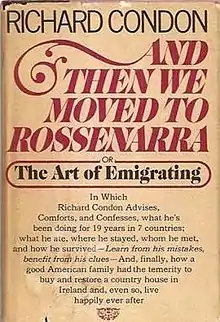 And Then We Moved to Rossenarra is a mostly light-hearted and occasionally humorous account of his family's many moves and residences throughout Europe and Mexico in the decades preceding the publication of the memoir. Before their move to Rossenarra, the name of a large, 1824 Georgian country house in County Kilkenny, Ireland, the Condon family had lived in "Paris, Madrid, New York, Mexico City, Paris again, London, Geneva, Locarno... spending a minimum of fourteen months in Spain... and a maximum of nine and a half years in Switzerland."[1]:27–28 In the late 1960s the Irish government passed legislation permitting foreign writers, composers, and artists to live in Ireland without being subject to Irish income tax. A number of British writers such as Len Deighton, Frederick Forsyth, and Leslie Charteris, as well as the Americans J. P. Donleavy and Anne McCaffrey, immediately took up residence; Condon asserts, however, that despite moving to Rossenarra about the same time, his own finances and citizenship were such that he never benefitted from living in this tax-free haven.[1]:31
