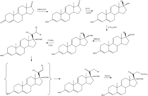 Anecortave can be synthesized from a 17-oxosteroid:[3]