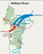 As the fighting in the cornfield was coming to a close, Maj. Gen. William H. French was moving his Federals forward to support Maj. Gen. John Sedgwick and veered into Confederate Maj. Gen. D.H. Hill's troops posted in the Sunken Road. Fierce fighting continued here for four hours before the Union troops finally took the road.[20]