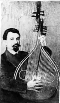 Antin Paplynsky (Ukrainian: Антоній Паплинський (c. 1870-c.1919) was a Ukrainian musical instrument maker who crafted banduras from 1905-1918. He was rumoured to have been shot by the Bolsheviks in 1919 or 1920. Paplynsky's instruments had 32-34 strings and were diatonically tuned. He was a popular bandura maker because of the quality of his instruments. In 1909 he received a Grand Prix award at the World Trade Exhibition held in Paris. His instruments were sought after not only in Ukraine, but in Russia and Canada.
