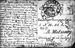 A postcard from Paplynsky to V. Shevchenko in Moscow detailing the fact that he had sent instruments and textbooks to Canada in 1916.