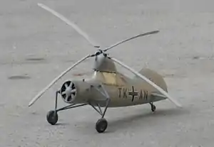 In 1938 Flettner, together with Kurt Hohenemser, built the Flettner Fl 265.[2] The Flettner Fl 265 addressed the problem of torque compensation as the first helicopter with counter-rotating rotors (Flettner double rotor).[2]